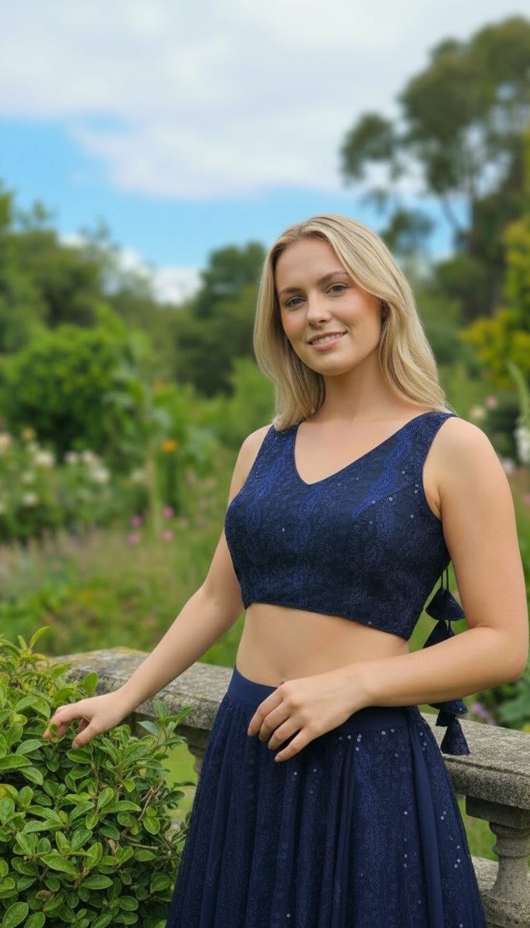 Vistavelle Navy Blue Color V-Neck PR Chikankari Georgette Digital Blouse