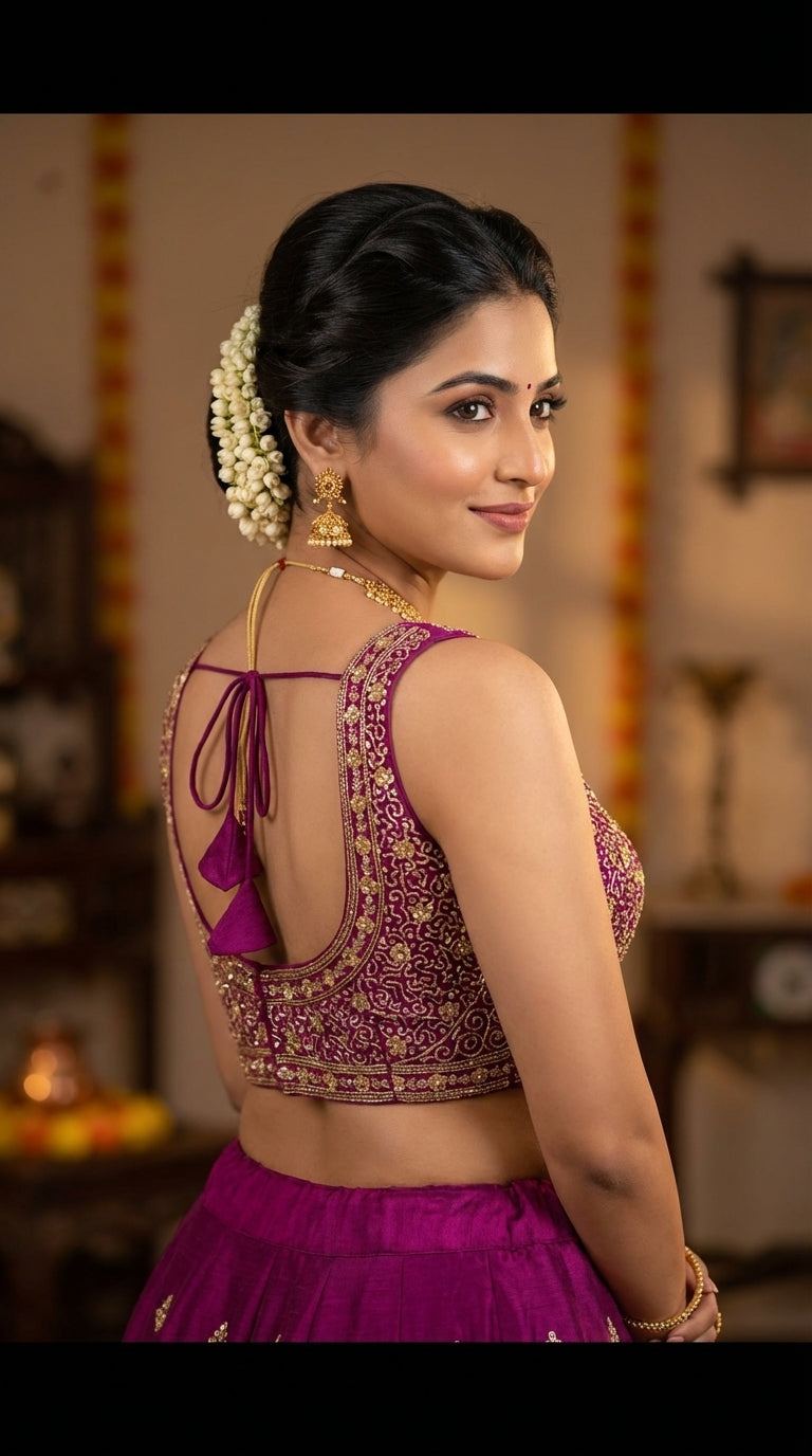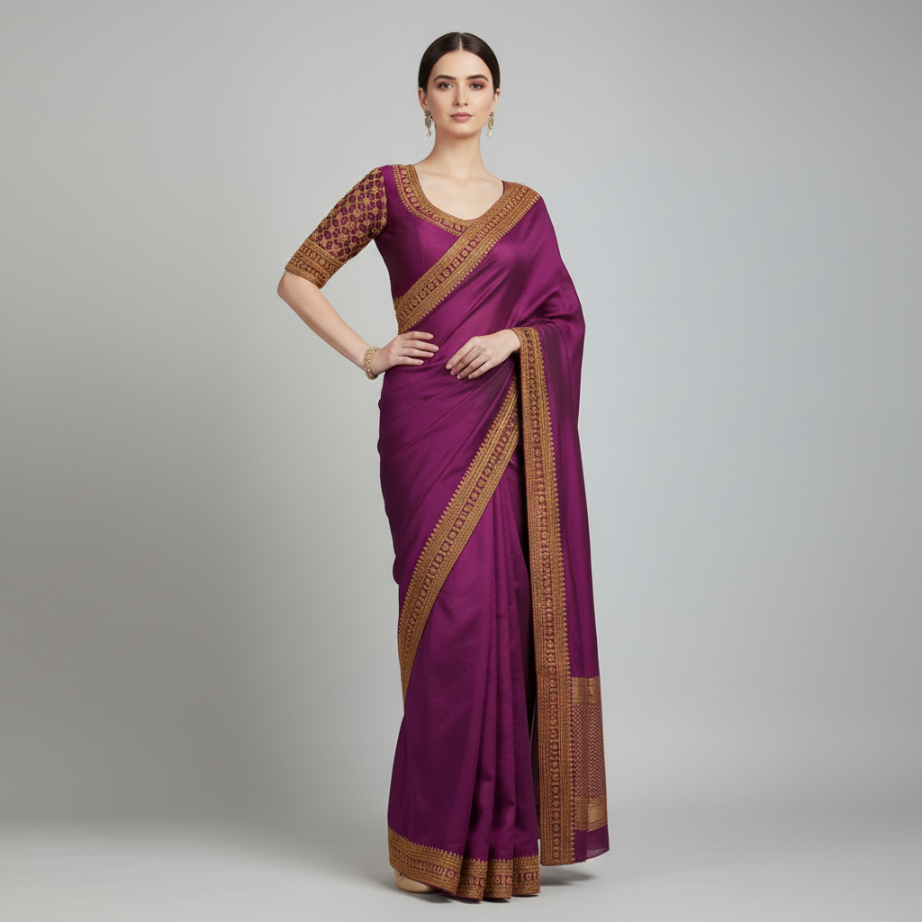 Vistavelle Wine Color V-Neck Vichitra Silk Zari Work Blouse