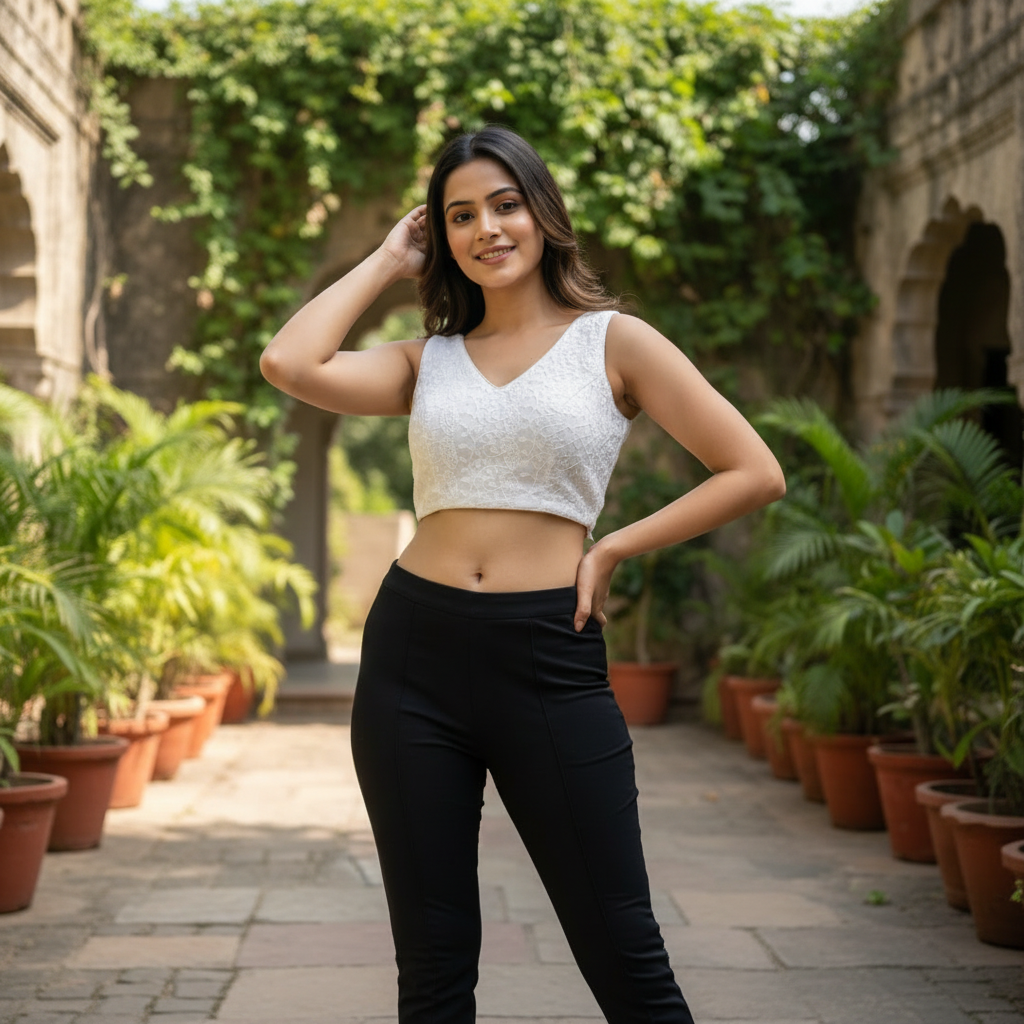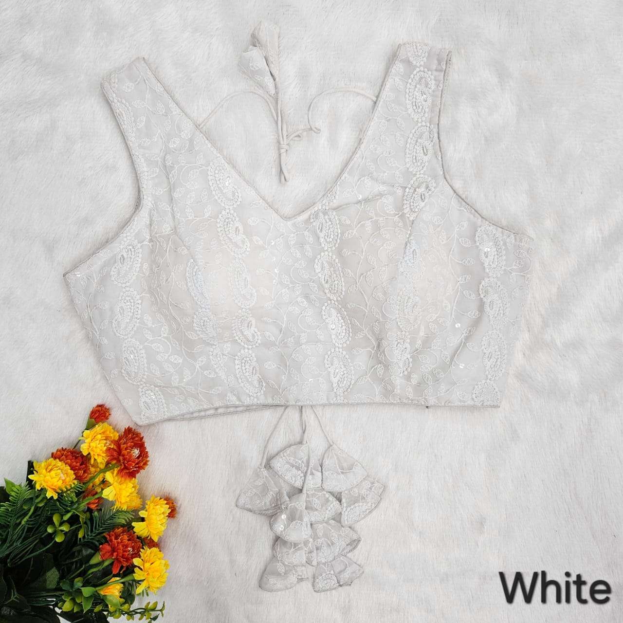Vistavelle White Color V-Neck PR Chikankari Georgette Digital Blouse