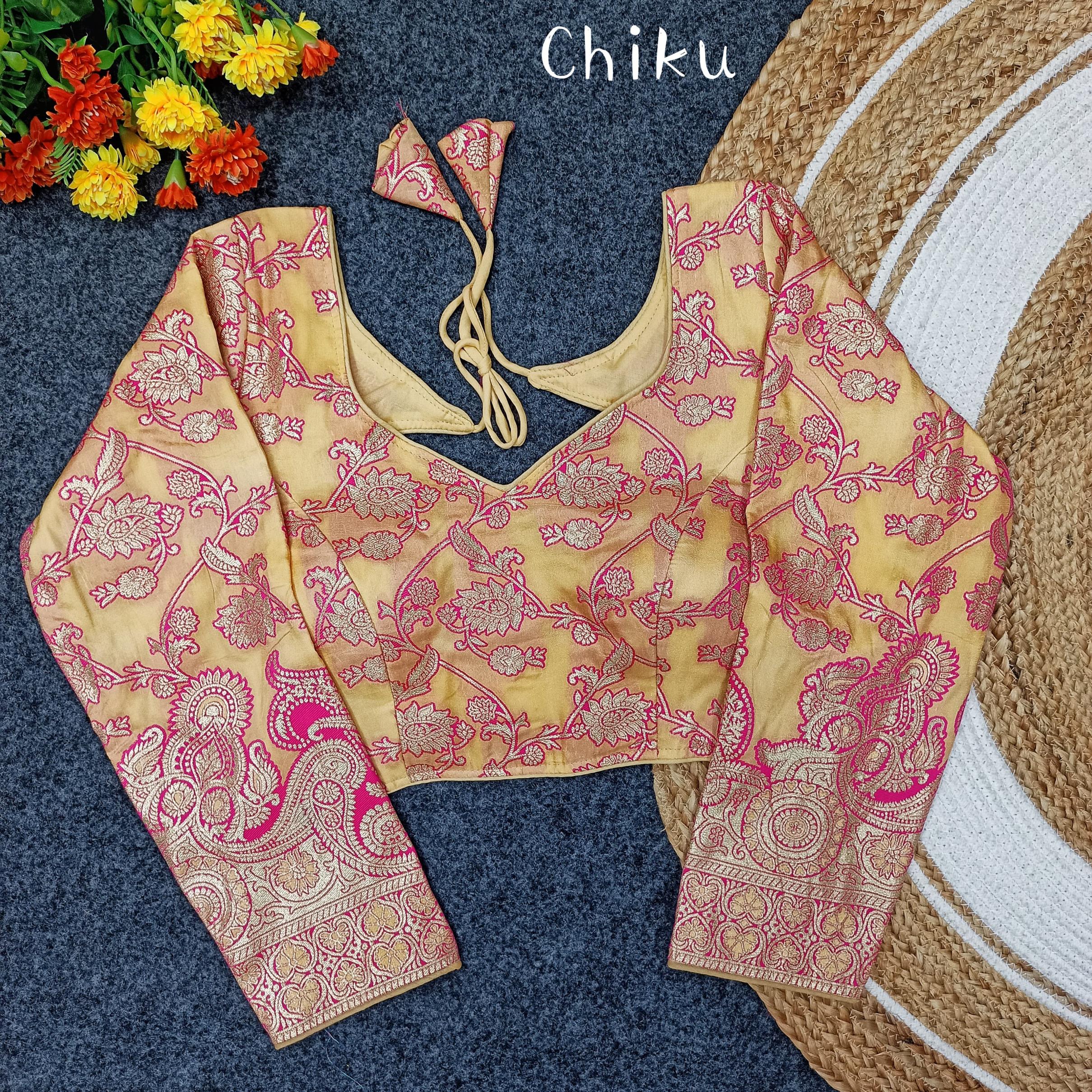 Vistavelle Golden Color Round Neck Vichitra Silk Zari Work Blouse