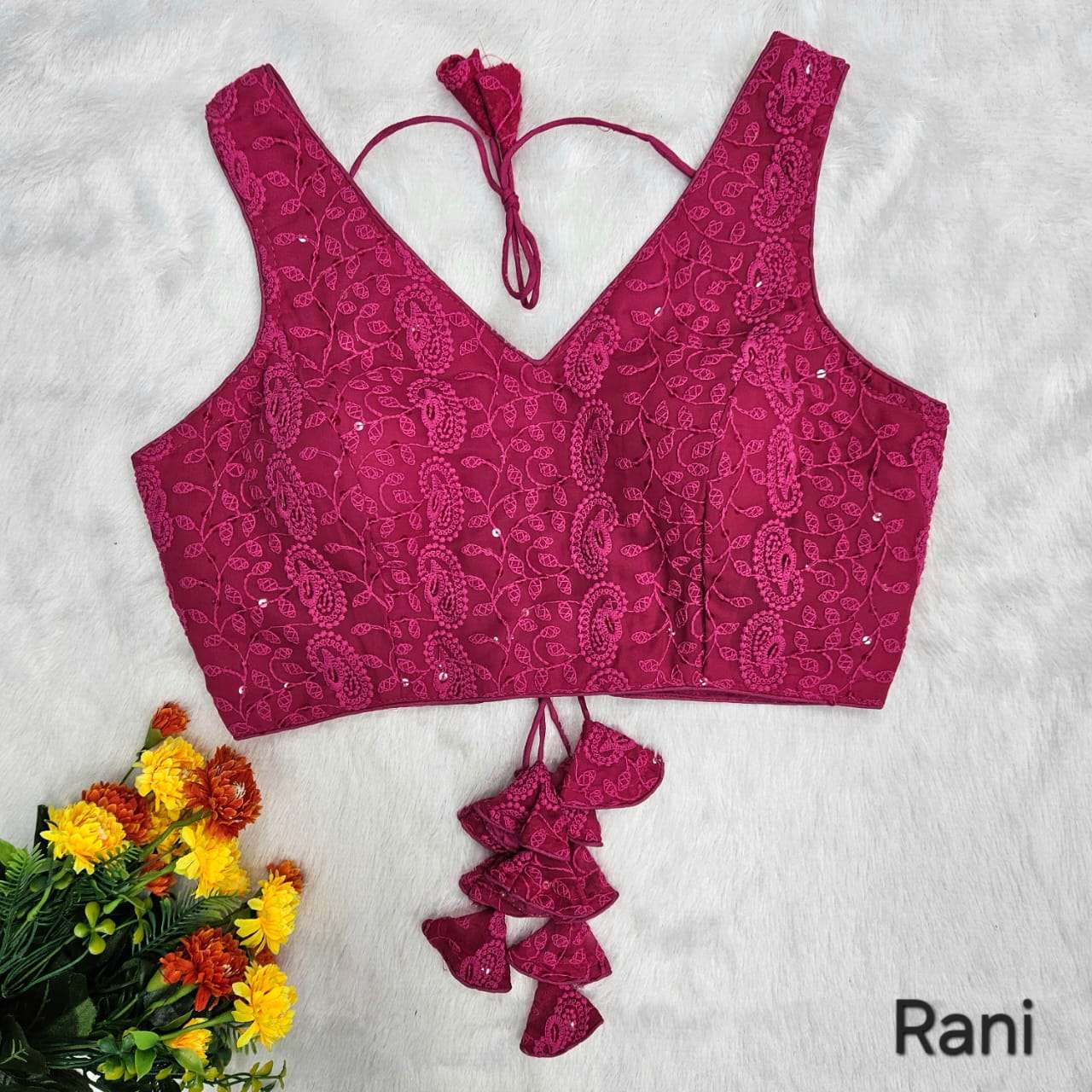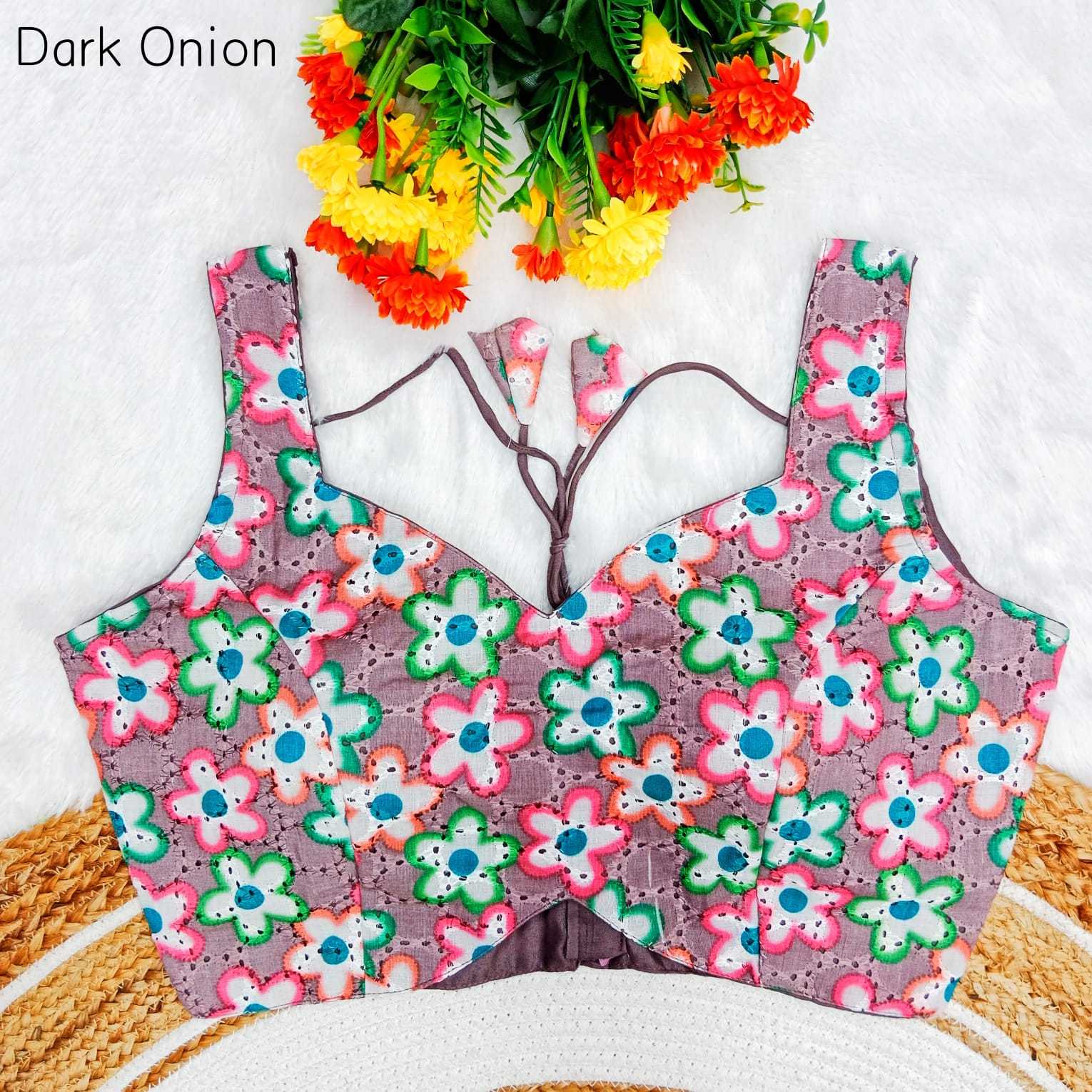 Vistavelle Dark Onion Color V-Neck Hakoba Cotton Chikankari Digital Blouse