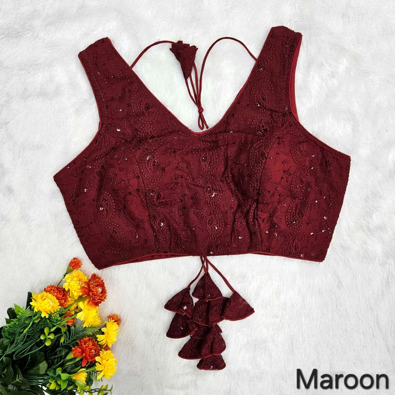 Vistavelle Maroon Red Color V-Neck PR Chikankari Georgette Digital Blouse