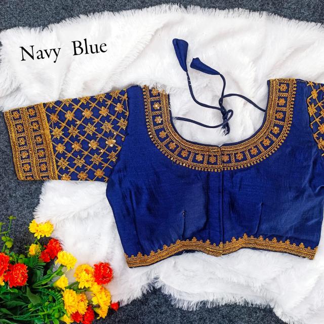 Vistavelle Navy Blue Color Round Neck Vichitra Silk Zari Work Blouse
