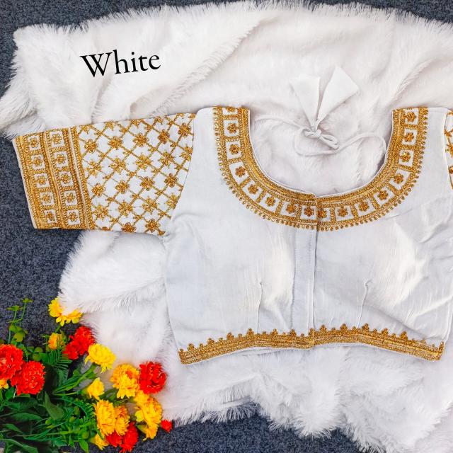 Vistavelle White Color Round Neck Vichitra Silk Zari Work Blouse