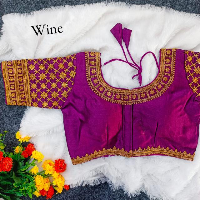 Vistavelle Wine Color Round Neck Vichitra Silk Zari Work Blouse