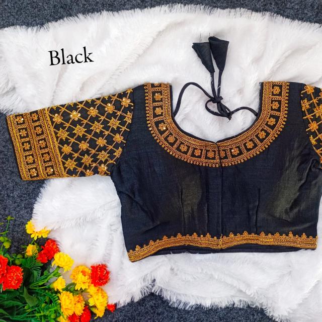 Vistavelle Black Color Round Neck Vichitra Silk Zari Work Blouse