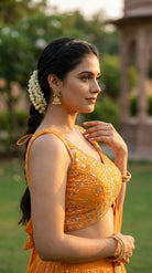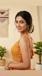 Add a vibrant festive touch to your ethnic look with this Vistavelle Yellow Color V-Neck Vichitra Silk Zari with Sequin Embroidery Work Blouse from Vistavelle Fashion. Crafted in rich Vichitra Silk, this elegant blouse showcases exclusive jari and sequin embroidery detailing, offering a luxurious shimmer that feels refined and graceful without being heavy.