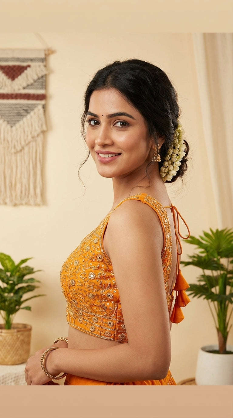 Pair this statement blouse with silk, chiffon, georgette, or banarasi sarees for weddings, festive gatherings, and evening celebrations. Gold or antique jewelry will further enhance its designer-inspired elegance.