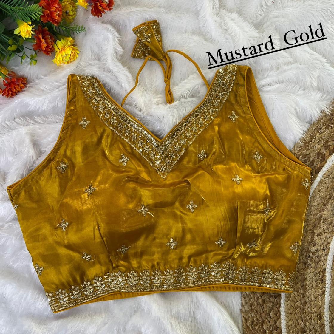 Mustard Jari Embroidered V-Neck Blouse – Designer Sequence Work Ethnic Blouse | Ships from USA