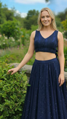 Vistavelle Navy Blue Color V-Neck PR Chikankari Georgette Digital Blouse