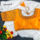 Pair this mustard-colored blouse with silk, chiffon, georgette, or banarasi sarees for weddings, festive gatherings, and evening celebrations. Gold accessories and a statement dupatta will elevate the look further.