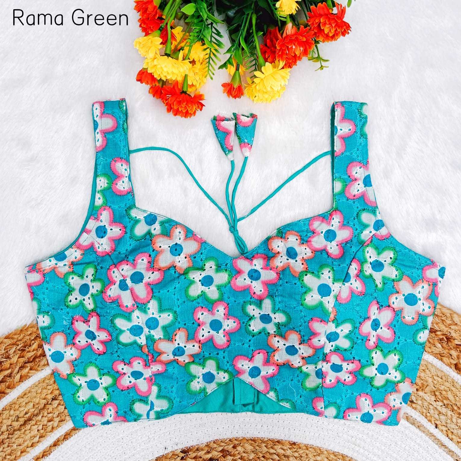 Vistavelle Rama Green Color V-Neck Hakoba Cotton Chikankari Digital Blouse