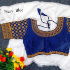 Pair this navy blue-colored blouse with silk, chiffon, georgette, or banarasi sarees for weddings, festive gatherings, and evening celebrations. Gold accessories and a statement dupatta will elevate the look further.