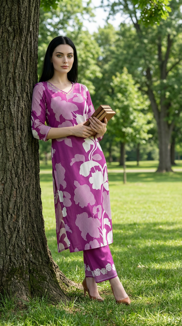 Experience effortless comfort and refined style with this beautifully crafted kurta with pants set, designed for everyday elegance and easy wear. Made from soft rayon fabric, this set offers a breathable feel with a smooth, graceful drape that remains comfortable throughout the day.