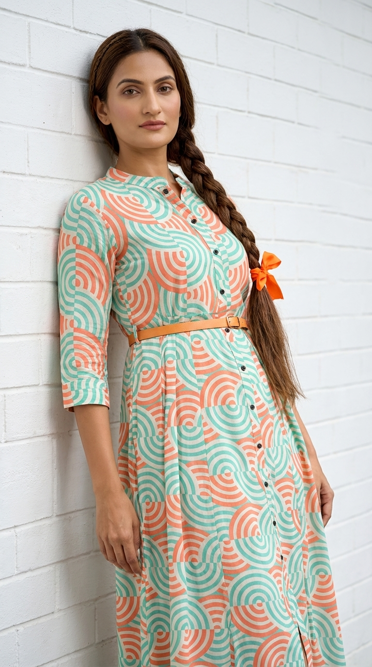 The printed design adds subtle visual interest while maintaining a clean and refined look. Its Mid-Length length enhances the overall silhouette, allowing easy styling for both casual and semi-formal occasions. Comfortable yet polished, this kurti transitions seamlessly from daily wear to relaxed gatherings.