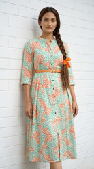 Cyan and Orange Rayon Fancy Readymade Western Mid-Length Kurti