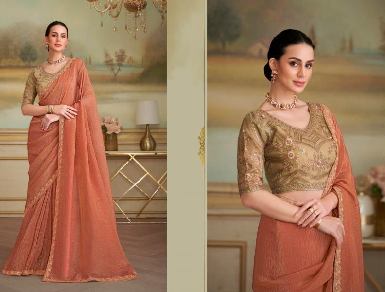 Soft Sparkle Georgette Saree with Stitched Brocade Silk Blouse – Wedding & Reception Saree USA