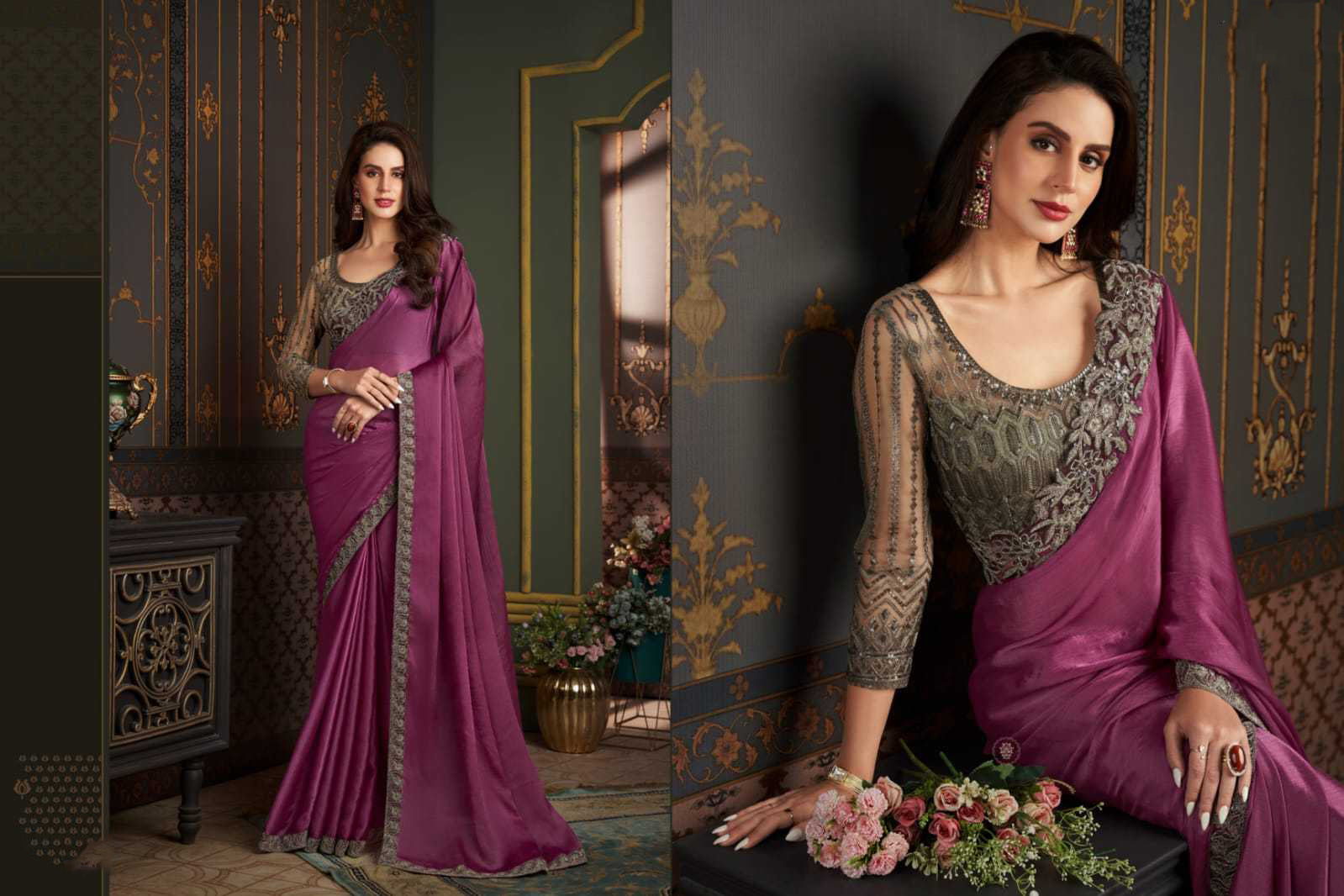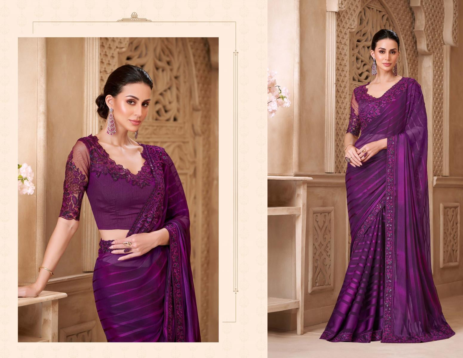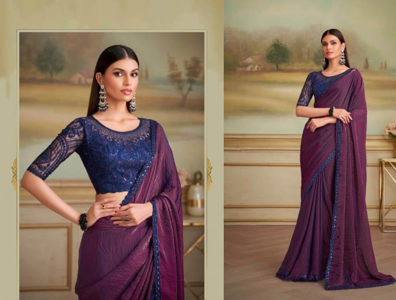 Plum Majestic Shaded Silk Saree with Stitched Sartin Silk Blouse – Designer Wedding Reception Wear USA
