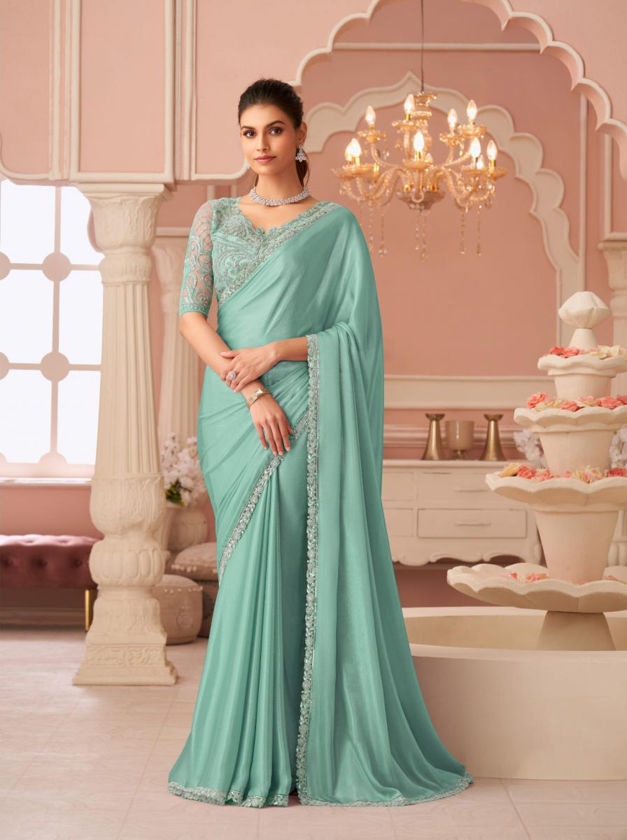 Introducing a refined saree crafted in luxurious chiffon shimmer fabric, designed to offer a graceful flow and luminous finish under soft and warm lighting. Lightweight yet elegant, this saree creates a beautifully fluid silhouette, making it ideal for women who appreciate understated luxury with modern appeal.