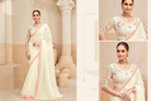 Ivory Two-Tone Shimmer Georgette Saree with Fall & Pico Multi-Thread Embroidered Full Stitched Blouse
