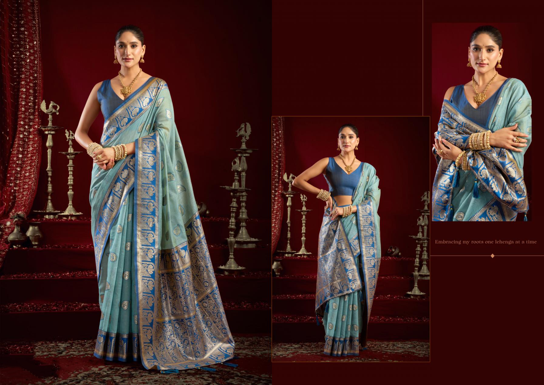 Vistavelle Sky Blue Fancy Modal Banarasi Jari Saree with Zhallar