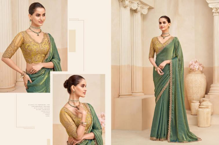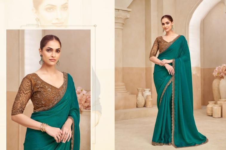 Teal Fendi Saree with Fall & Pico Heavy Embroidered Fully Stitched Blouse