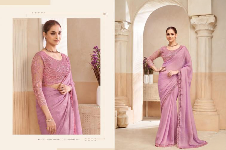 Rosy Pink Fendi Saree with Fall & Pico with Embroidered Designer Full Stitched Blouse