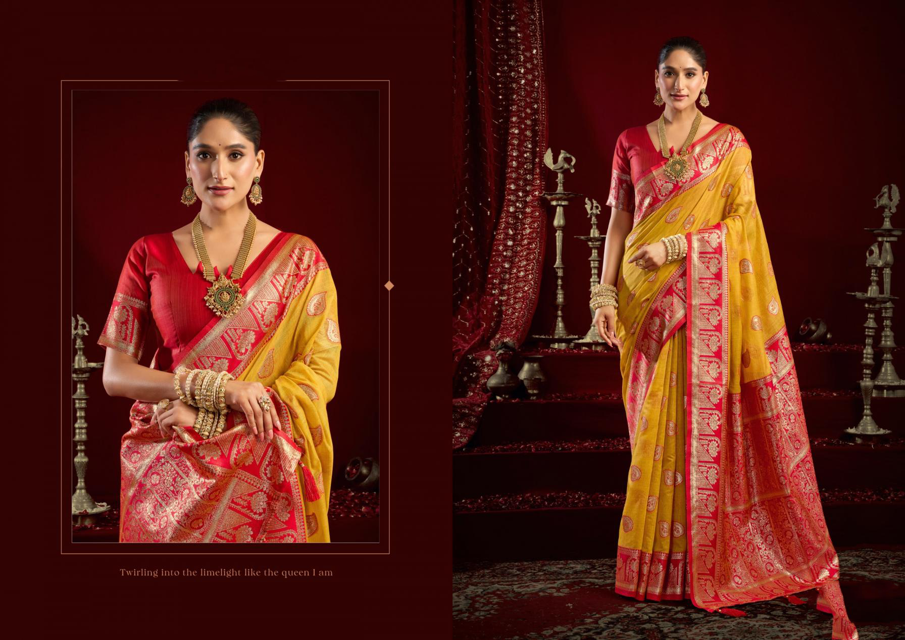 Vistavelle Mustard Yellow Fancy Modal Banarasi Jari Saree with Zhallar
