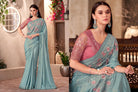 Vistavelle Aqua Blue Chiffon Embroidered Saree