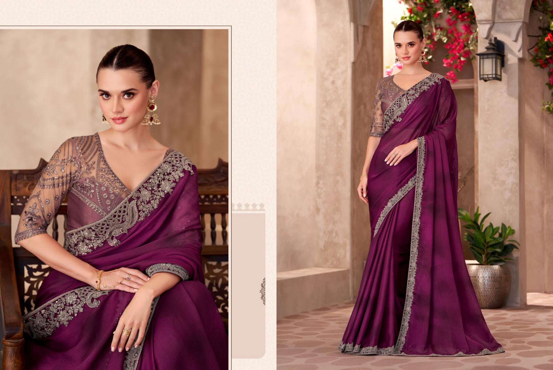 Vistavelle Deep Plum Chiffon Embroidered Saree