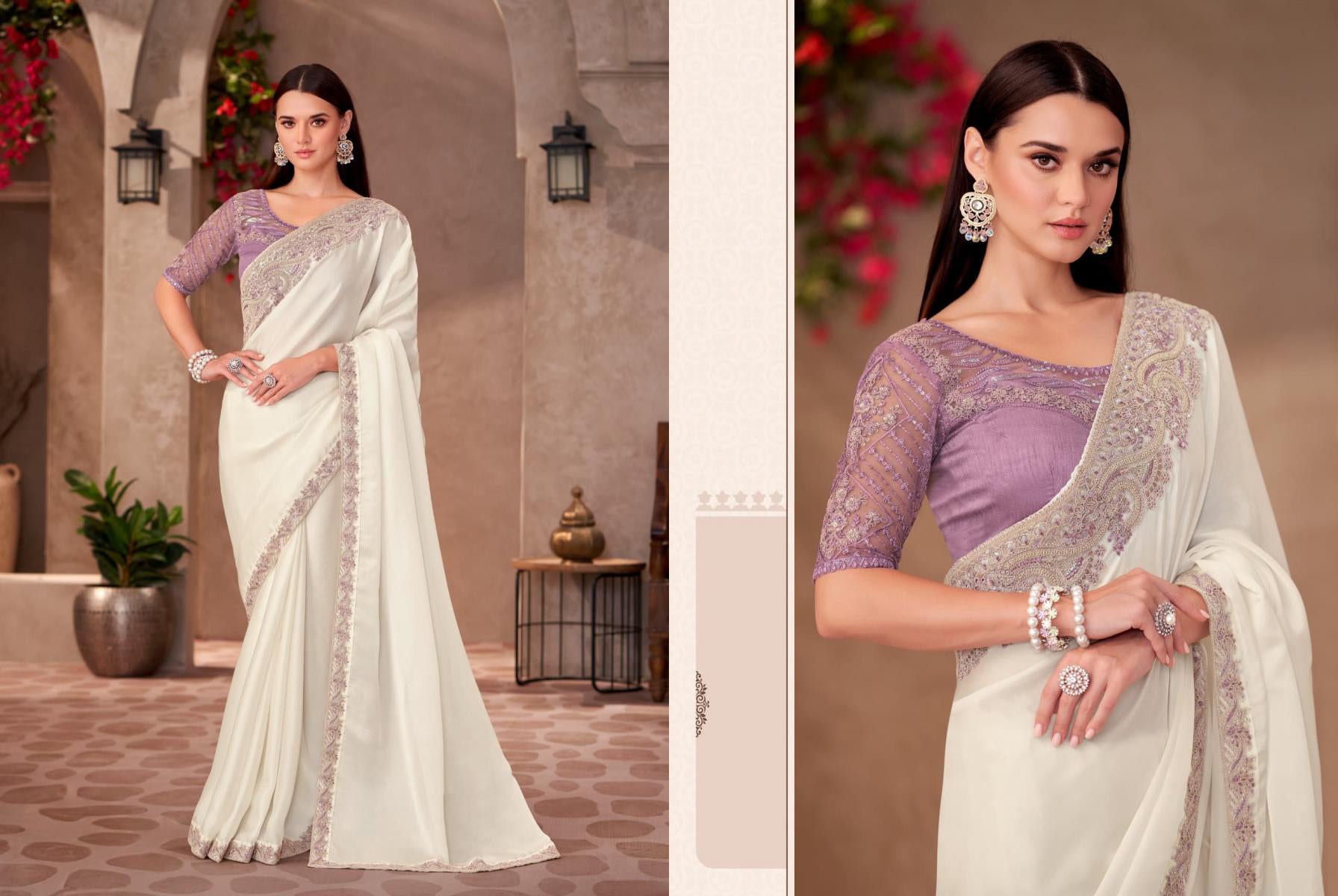 Vistavelle Ivory White Chiffon Embroidered Saree