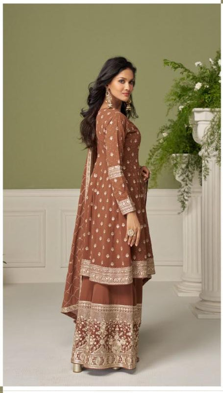 Vistavelle Mocha Brown Georgette fully stitch Palazzo Dress