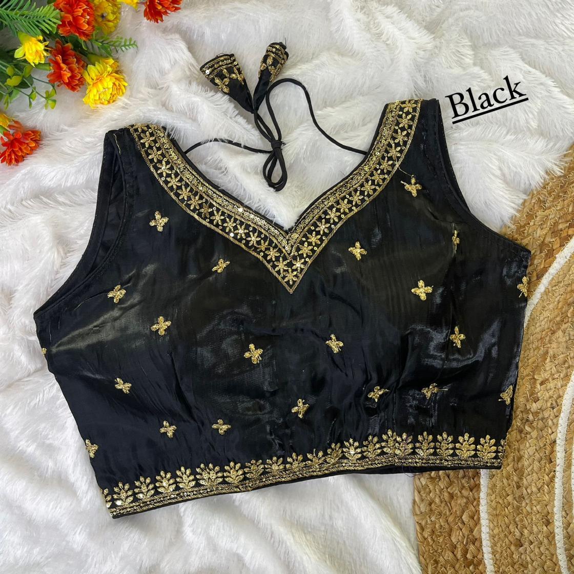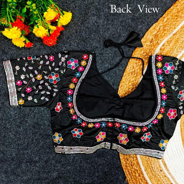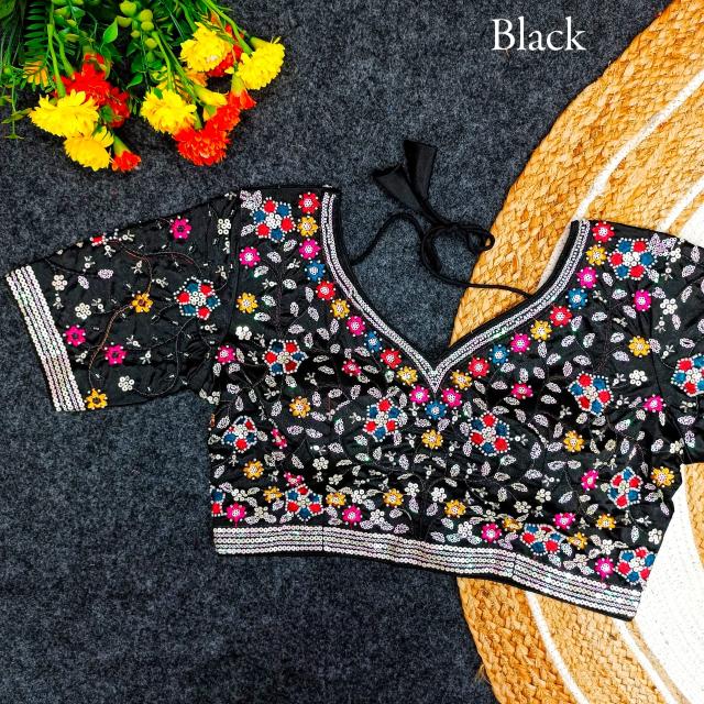 Black Multicolor Thread Work Gajji Silk Designer Blouse – Partywear Padded Readymade Blouse (USA Stock)