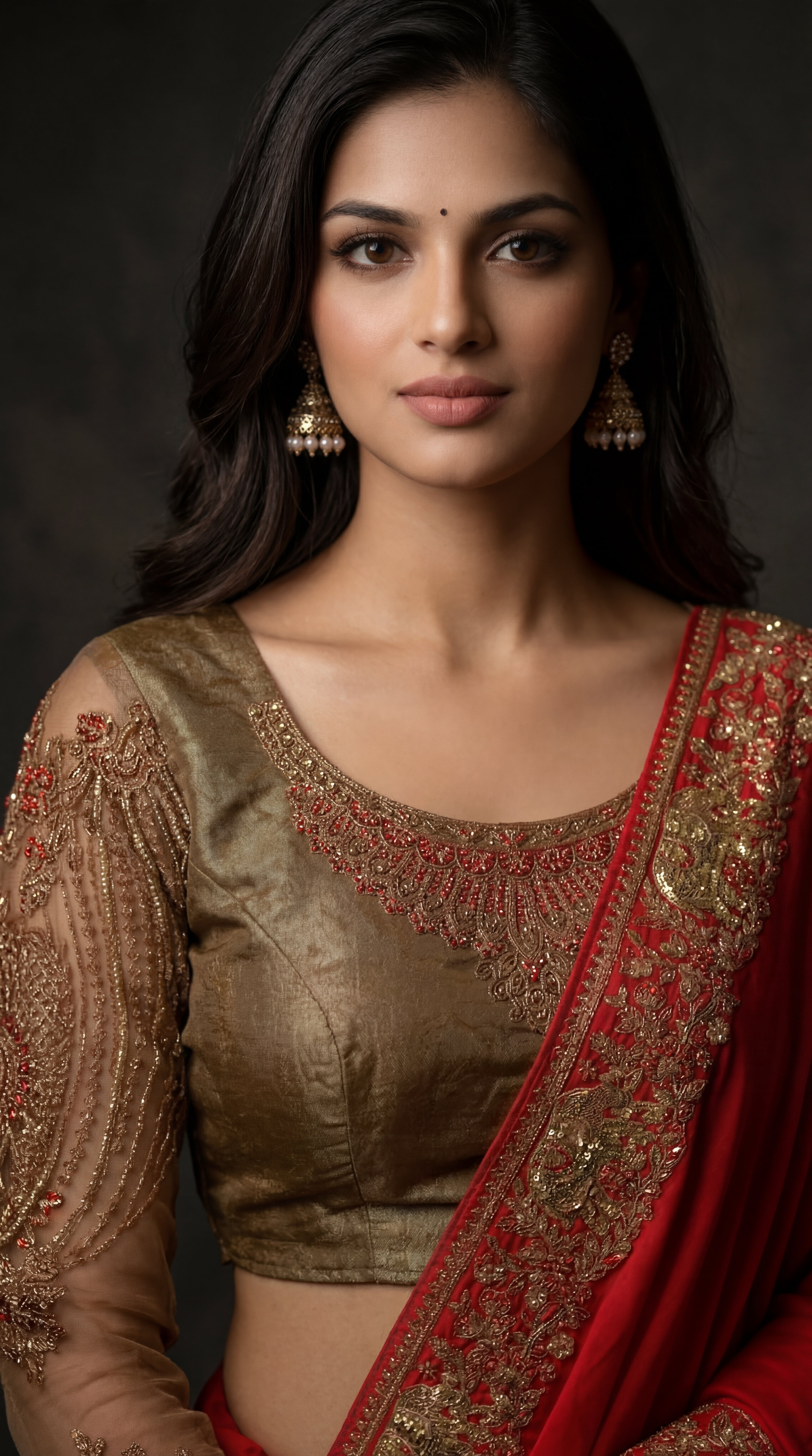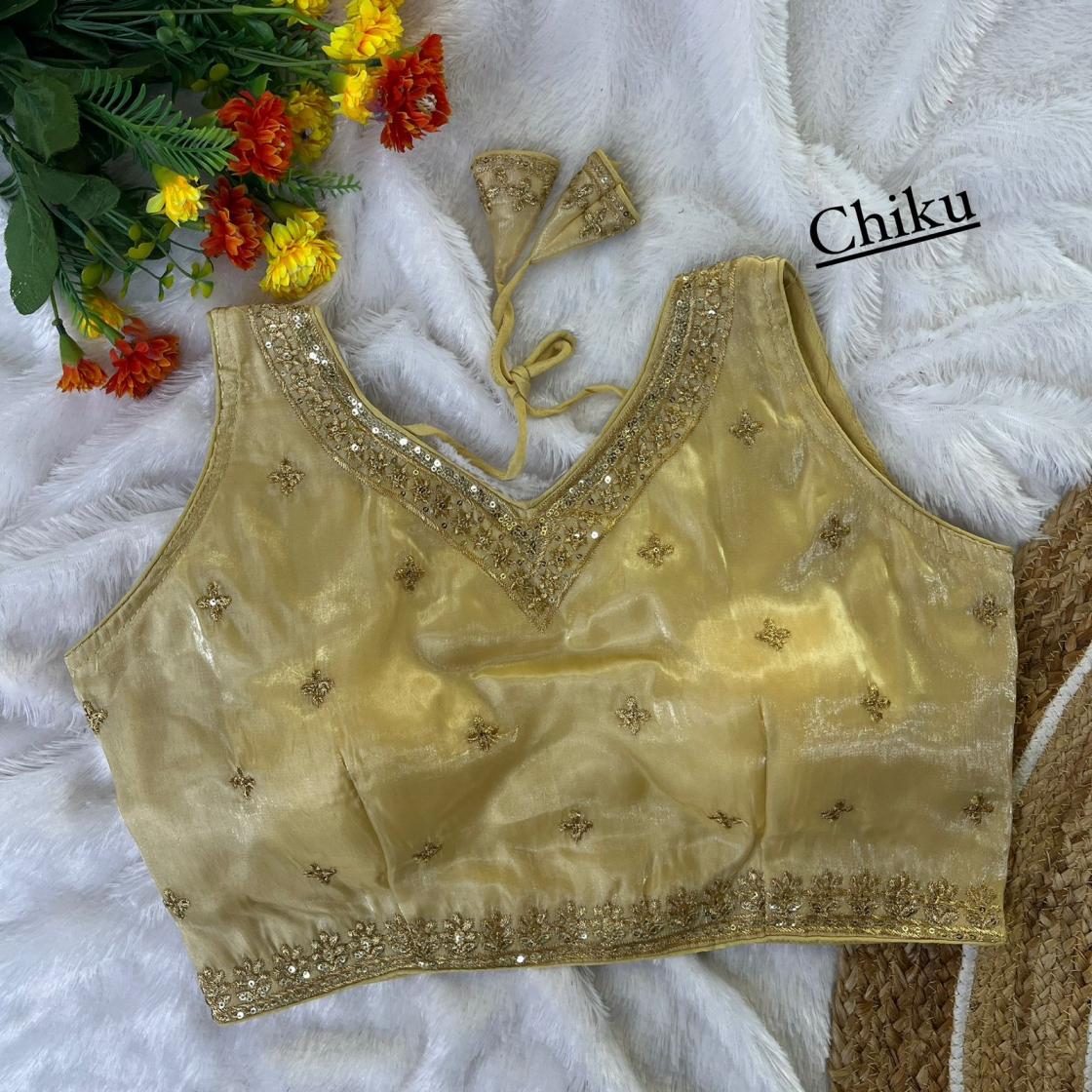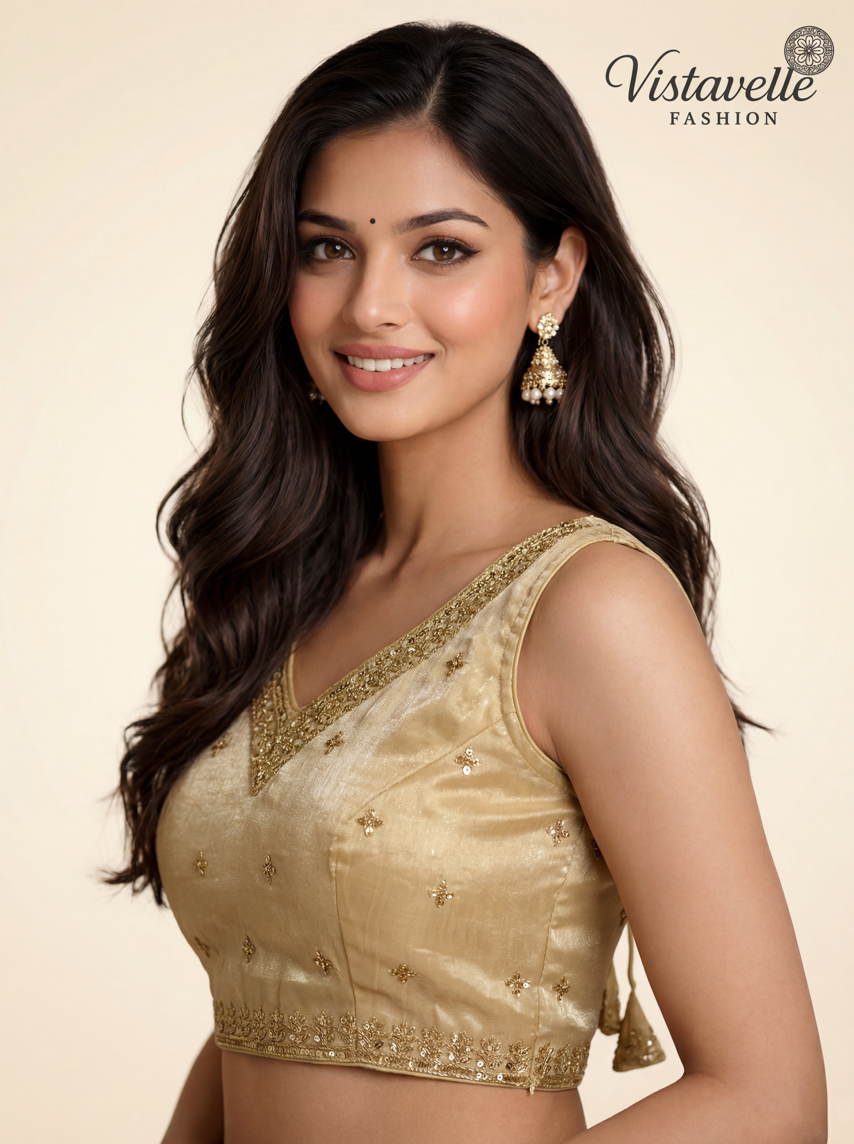 Chiku Jari Embroidered V-Neck Blouse – Designer Sequence Work Ethnic Blouse | Ships from USA