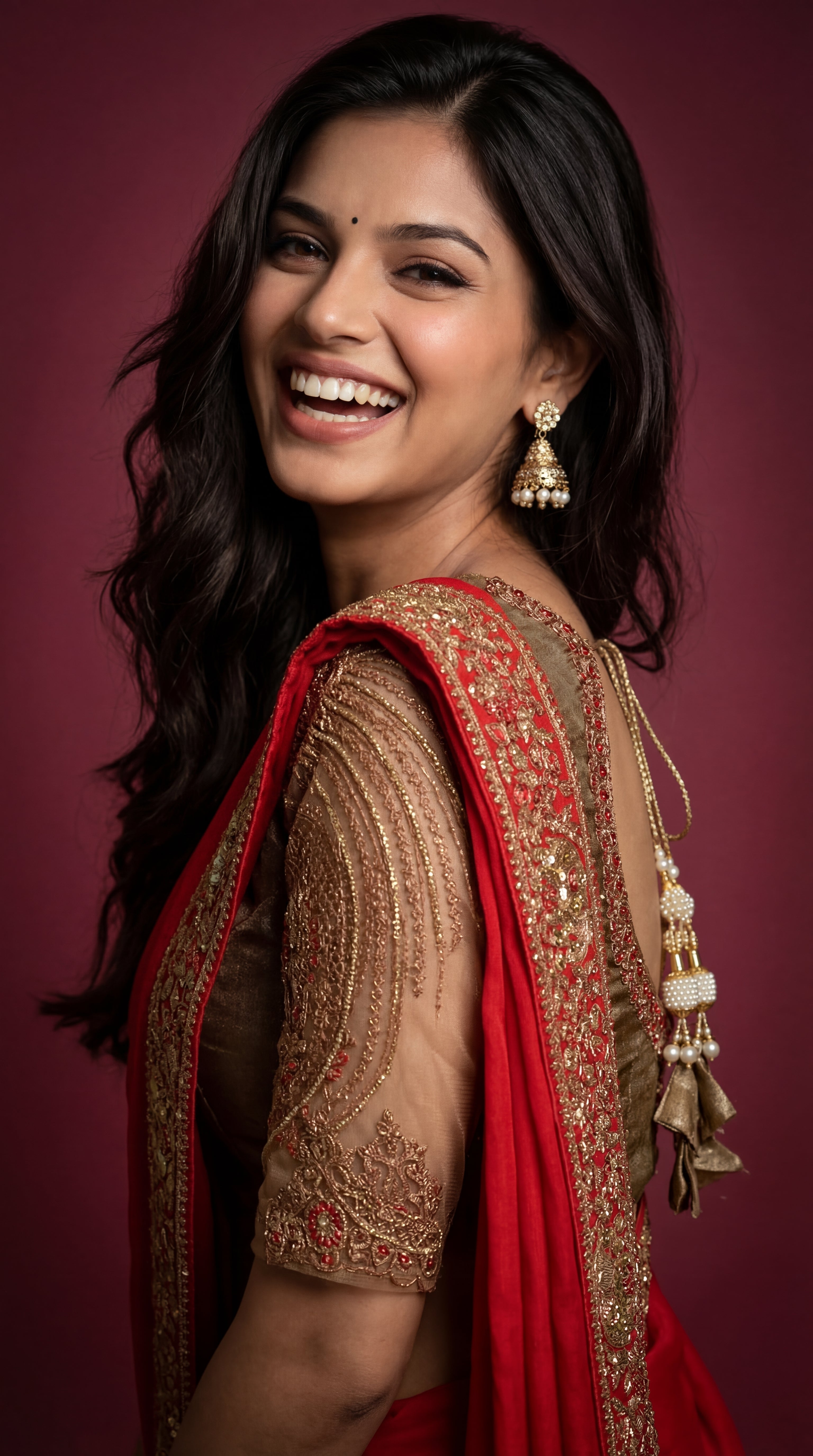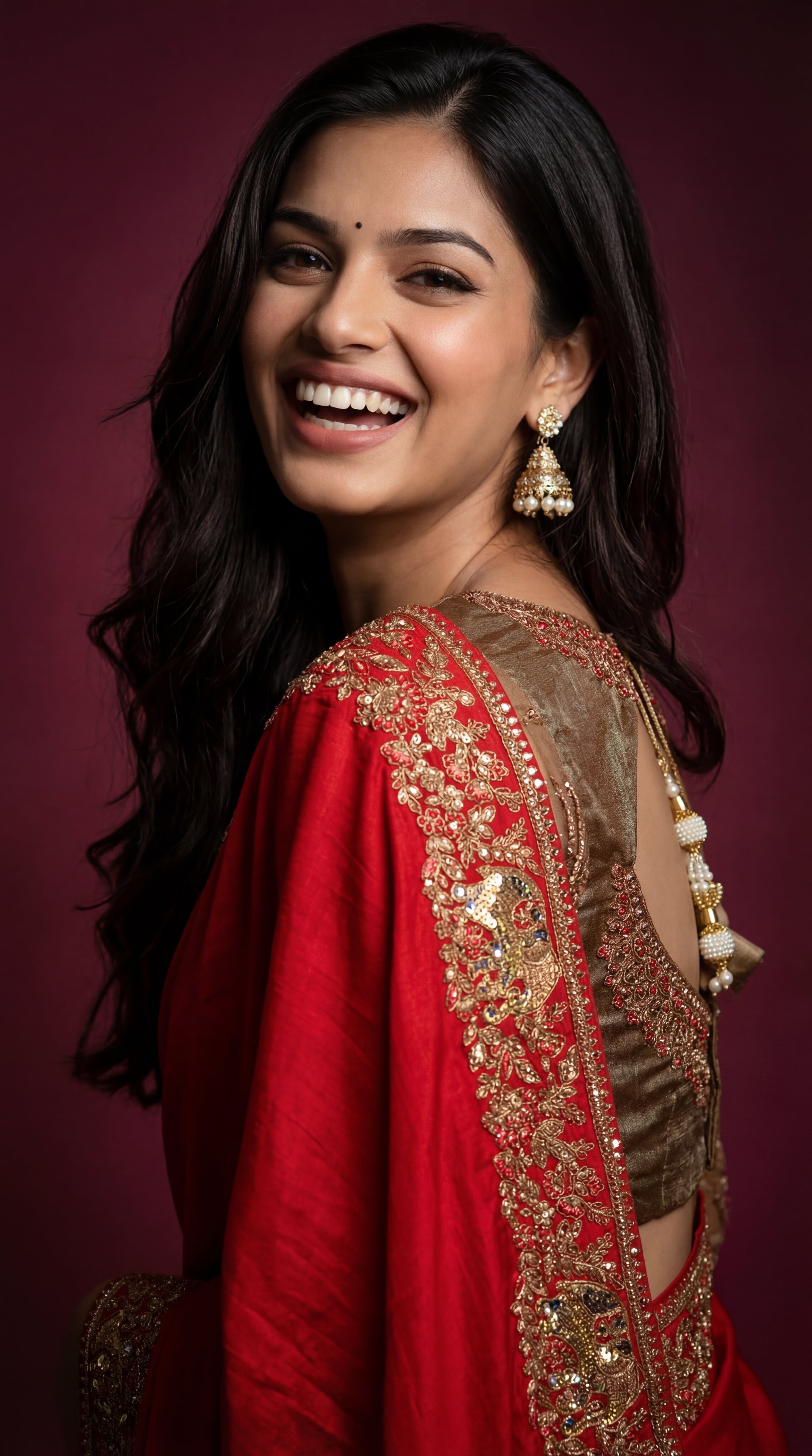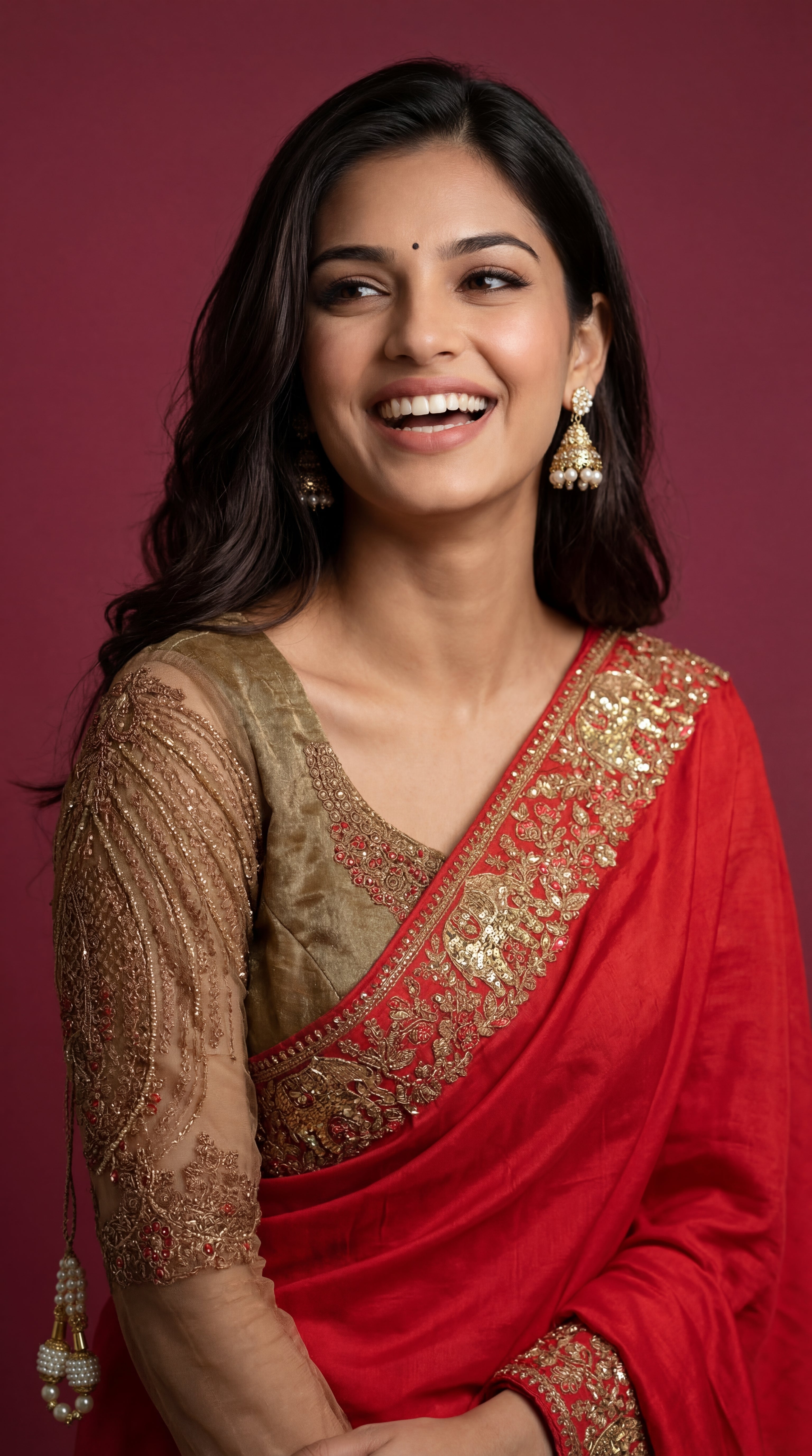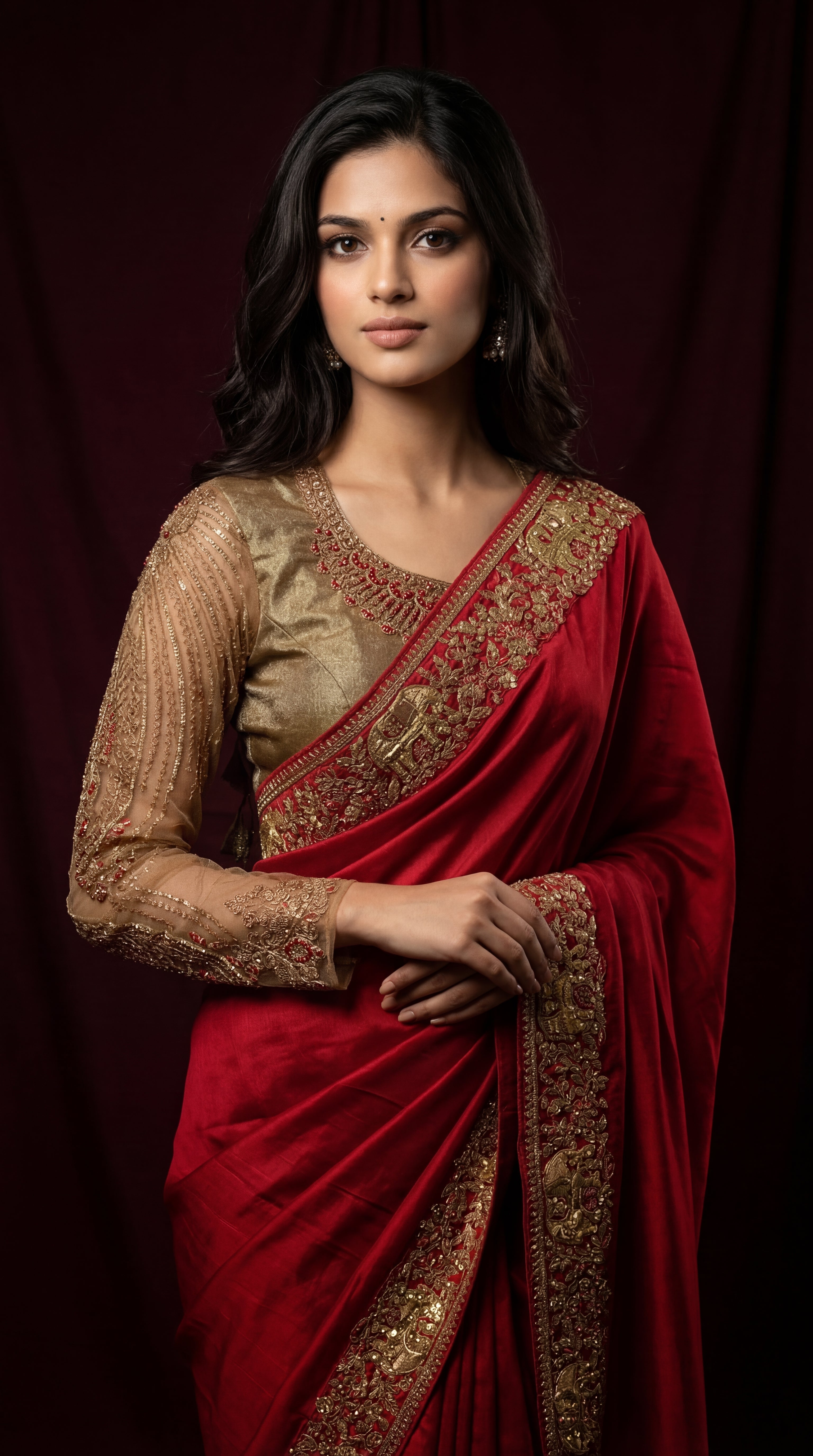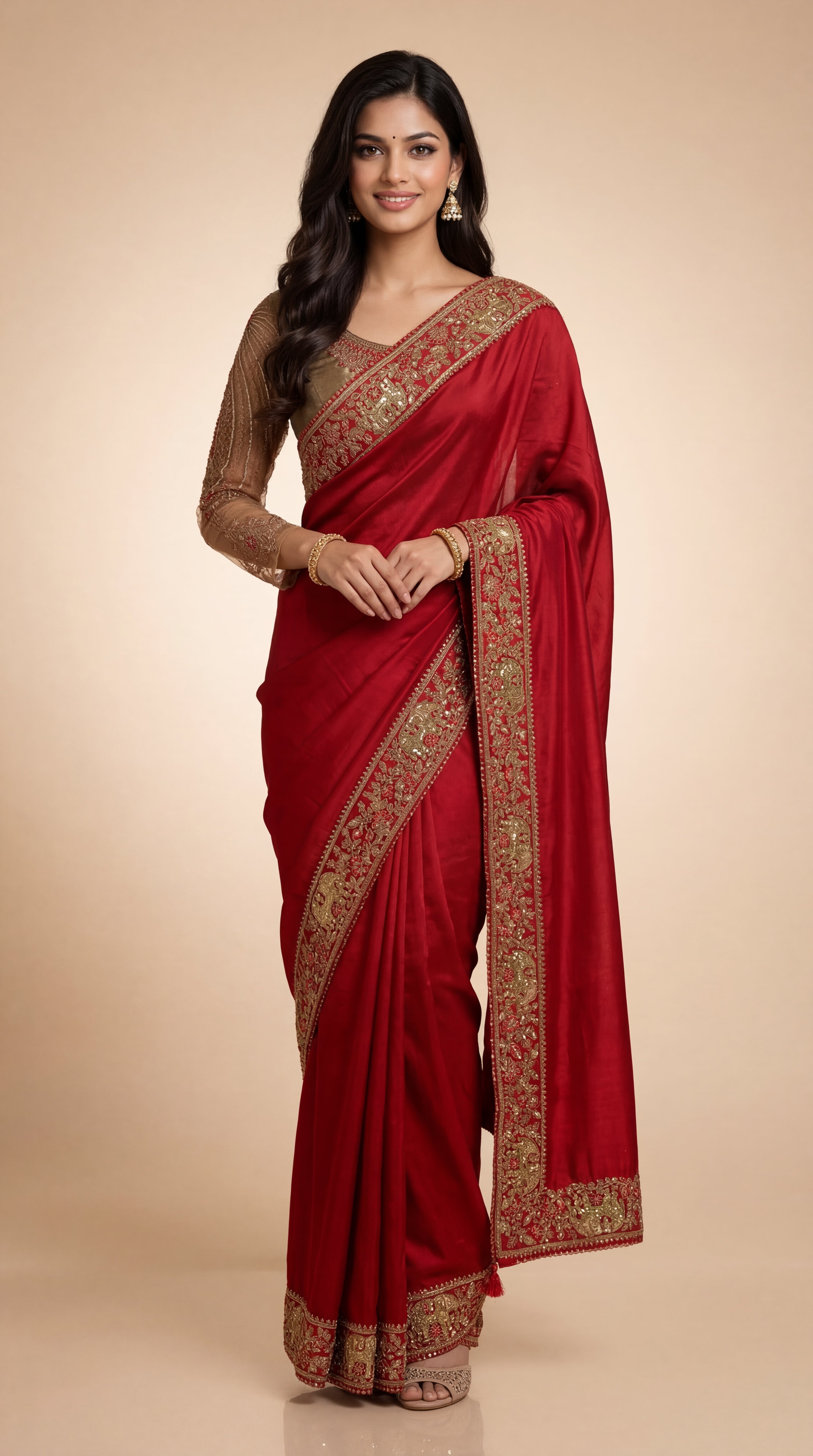 Blooming Red Satin Silk Saree with Embroidered Stitched Brocade Silk Blouse – Elegant Wedding & Party Wear | Ships from USA