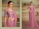 Onion Pink Sparkle Georgette Saree with Embroidered Stitched Blouse – Elegant Wedding Reception Wear
