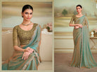 Step into refined elegance with this stunning Blossom Pattern Georgette Saree, featuring a graceful dual-tone drape with delicate woven detailing. The soft green and muted gold combination creates a sophisticated festive look, perfect for weddings, receptions, and celebratory evenings.
