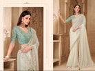 Powder White Georgette Silk Saree with Stitched Satin Silk Blouse – Wedding & Reception Saree USA