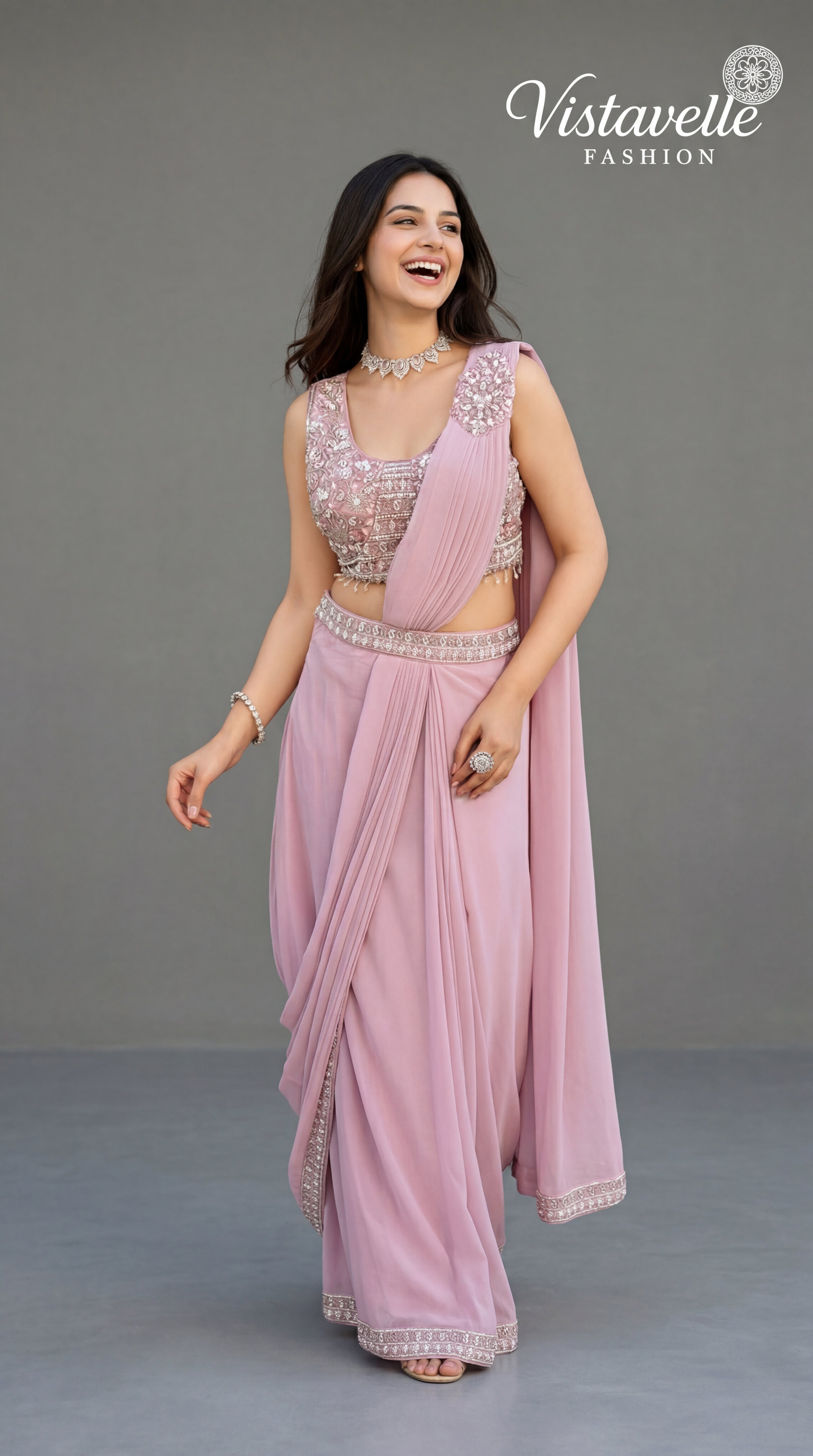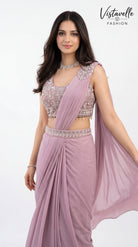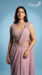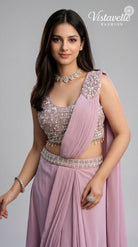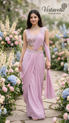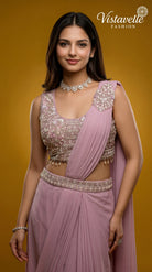 Turn heads effortlessly with this blush pink pre-draped saree crafted in premium viscose fabric, designed for modern elegance with zero draping effort.