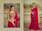 Cherry Red Designer Georgette Saree with Gold Work Blouse – Wedding Reception Party Wear Saree