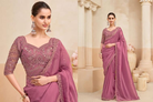 Rosy Pink Fendi Saree with Fall & Pico with Embroidered Designer Full Stitched Blouse