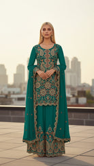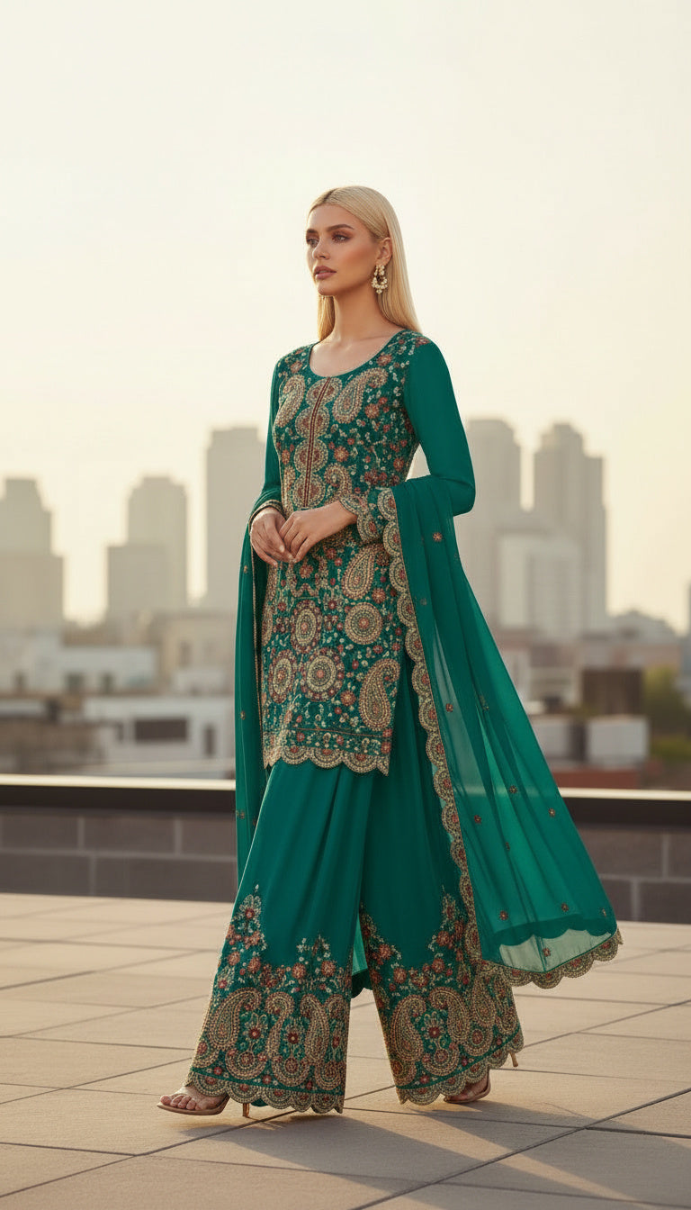Ideal for those seeking modern ethnic wear with a luxurious finish, this palazzo suit set delivers polished elegance without compromising on comfort.