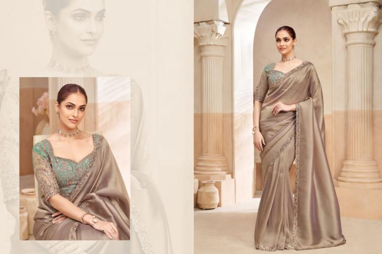 Discover regal elegance with this high-end saree, thoughtfully designed for grand celebrations and memorable occasions. Crafted to deliver a luxurious presence, the saree features a sophisticated two-tone shimmer finish that subtly transforms under different lighting, adding depth, movement, and refined allure to every drape.