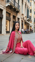 Pink French Crepe Silk Readymade Dhoti Jacket With Blouse Western Dress
