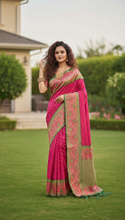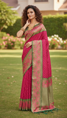 Pink and Green Designer Silk Fabric Saree with Fall & Pico Fully Stitched Blouse