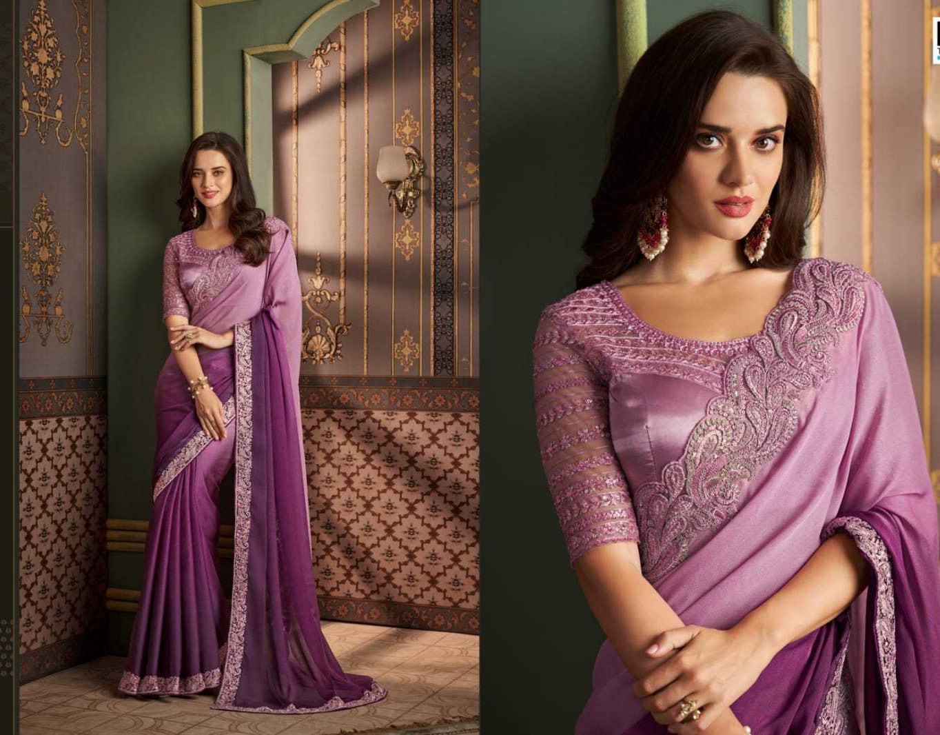 Plum Majestic Shaded Silk Saree with Stitched Sartin Silk Blouse – Designer Wedding Reception Wear USA