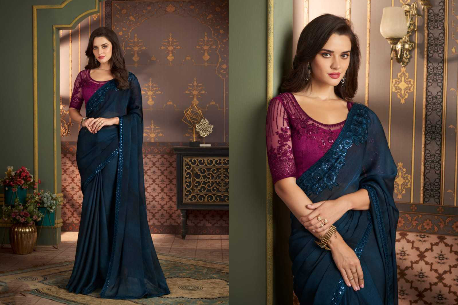 Elevate your evening elegance with this luxurious teal designer saree, crafted for women who appreciate refined glamour and timeless sophistication. The rich deep-teal tone is enhanced with intricate sequin and embroidery detailing along the border and pallu, creating a graceful shimmer with every movement.