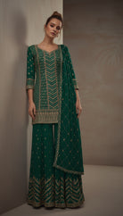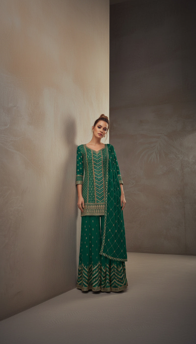 Ideal for those seeking premium ethnic wear with timeless charm, this palazzo suit set combines elegance, comfort, and ready-to-wear convenience.