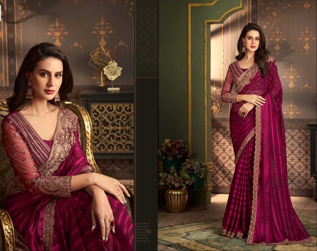 Step into regal elegance with this Ruby Wine Majestic Silk Saree, designed for women who appreciate bold sophistication and timeless craftsmanship. The rich wine tone paired with intricate zari embroidery along the border creates a royal silhouette ideal for weddings, receptions, festive evenings, and formal gatherings.