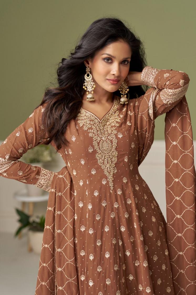 Vistavelle Mocha Brown Georgette Fully Stitch Palazzo Dress